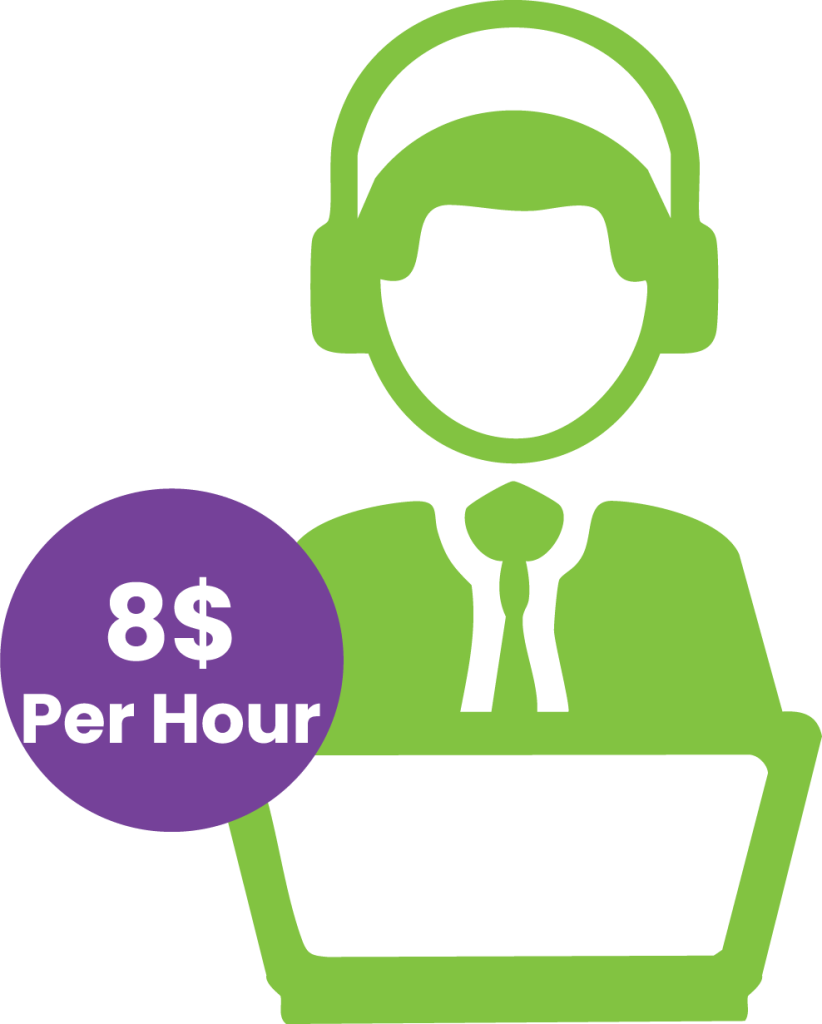 An hourly rate of $8 per hour for basic staff placements is charged. A higher rate may be applied for specialized roles. Additionally, there is a monthly fee of $25 covering our connectivity systems and tech support.